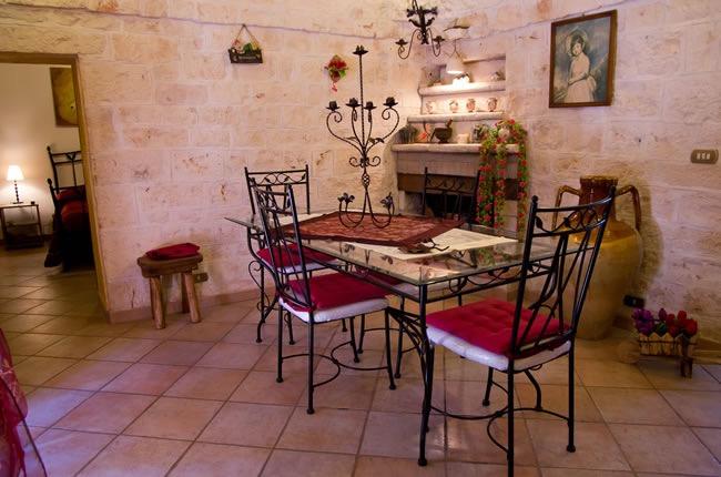 La struttura nasce dal recupero accurato di un antico trullo risalente al XVIII secolo, restaurato valorizzando i materiali originari e l’architettura tipica locale. Gli ambienti conservano tutto il fascino delle costruzioni in pietra: soffitti a cono, pareti spesse oltre un metro che garantiscono una temperatura naturalmente piacevole in ogni stagione e suggestive nicchie ricavate nei muri, elementi distintivi che rendono l’esperienza di soggiorno unica e profondamente legata alla tradizione pugliese.